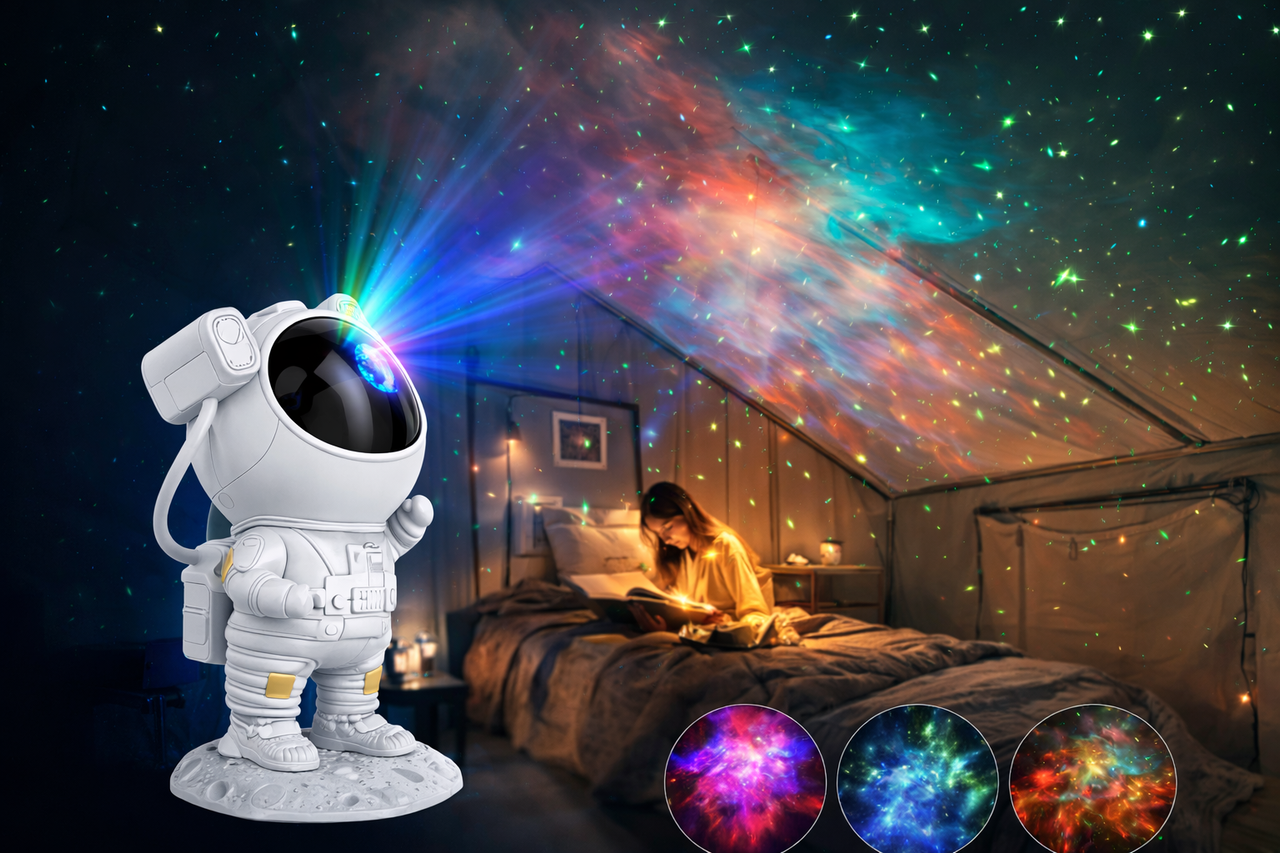 Projetor Luz Led Astronauta Galáxia Estrelas Nebulosa Iluminação Noturna Luminária Lâmpada Divertida Controle USB