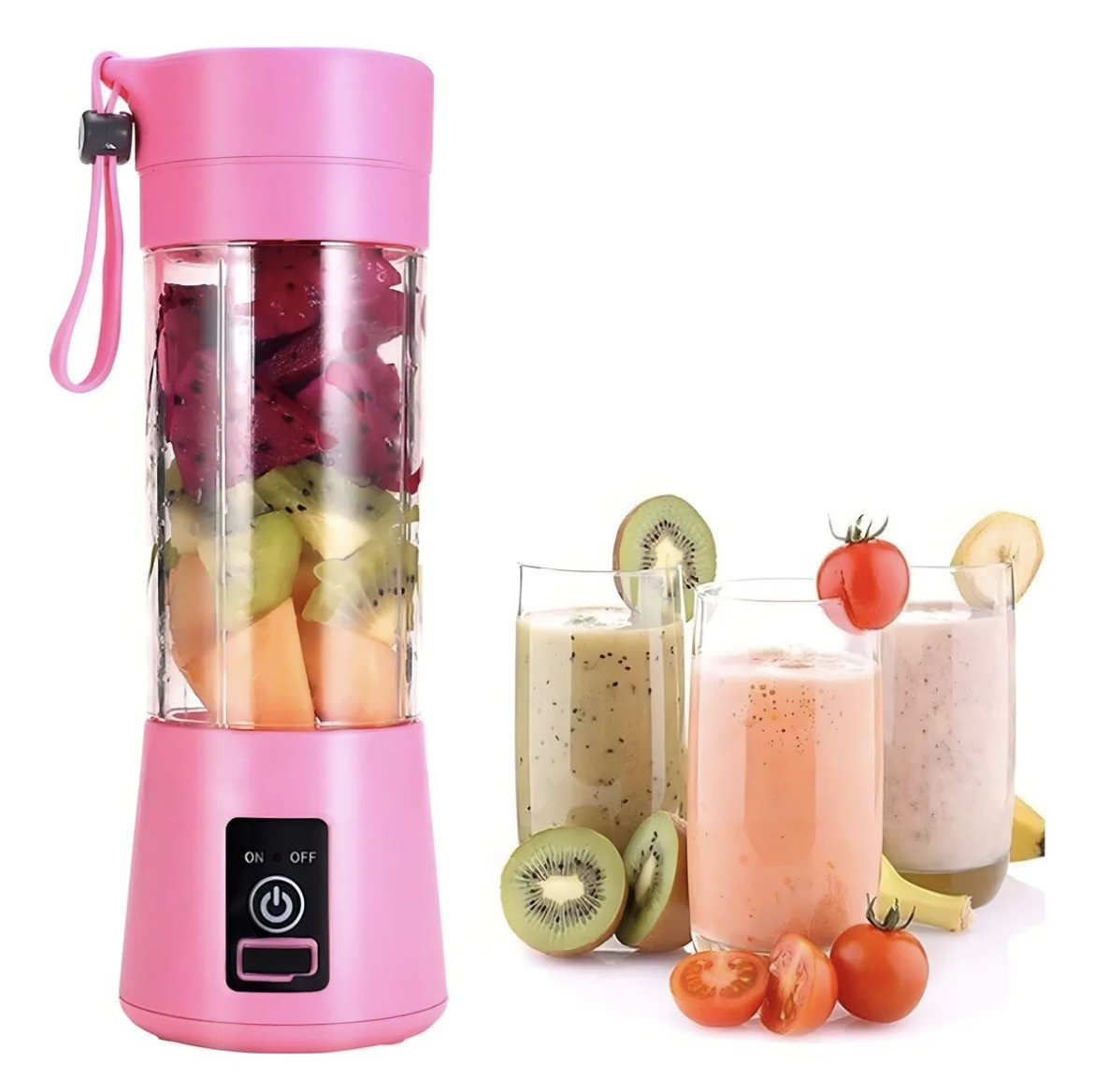 Mini Liquidificador Portátil Juice Rosa Recarregável USB 380ml Lâmina Inox